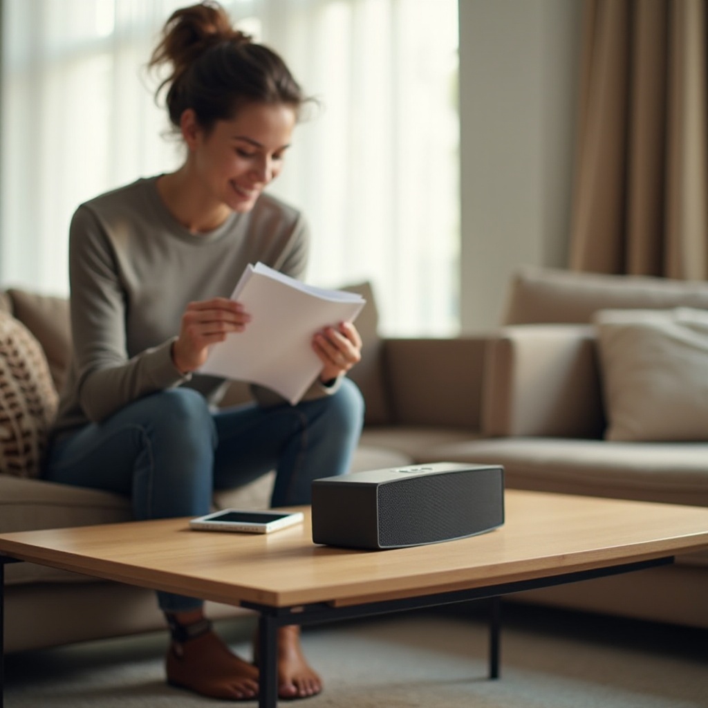 - Elhelyezés: A legjobb hangzás érdekében helyezze a hangszórót a szoba közepére. Kerülje a sarkokba vagy a falakhoz túl közel helyezést.
